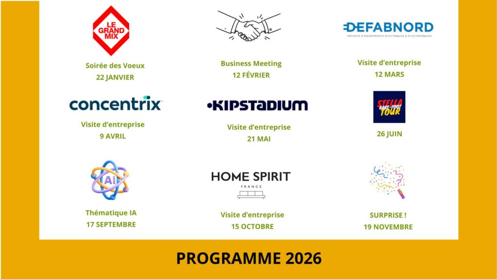 - 12 février 2026 : Speed Business Meeting à l’Hôtel de Ville de Tourcoing : viens rencontrer tes nouveaux copains de 2026